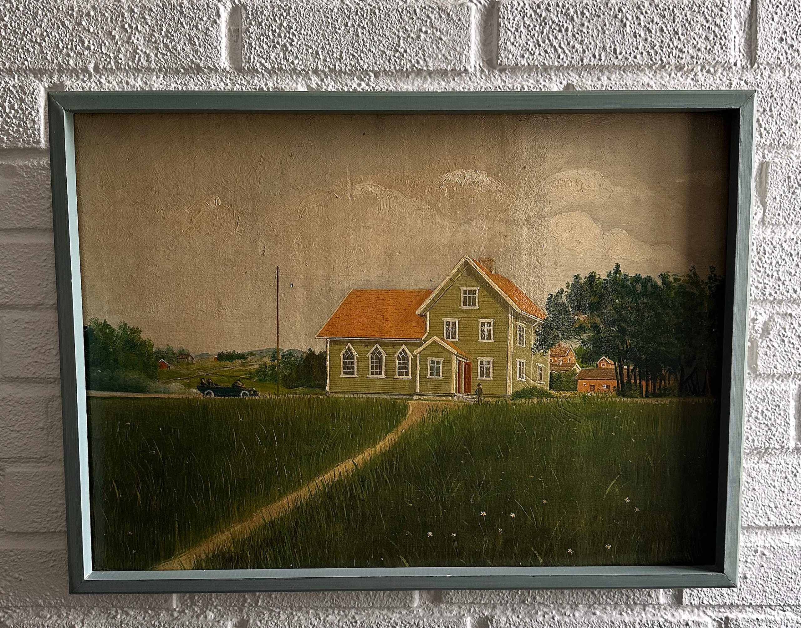 Nedanstående bild visar hur missionshuset såg ut sett från Göteborgsvägen. Tavlan är målad 1915 av dekorationsmålaren Olof Kjellgren. Den målades alltså redan året innan kyrkan invigdes. Kjellgren föddes i Danmark år 1870 och kom som ung till Göteborg och gifte sig där 1896 med Anna Lena Jonsson. Familjen med två barn flyttade från Göteborg till Björsegården, Sävedalen år 1908 och sedan vidare till Borås 1916.